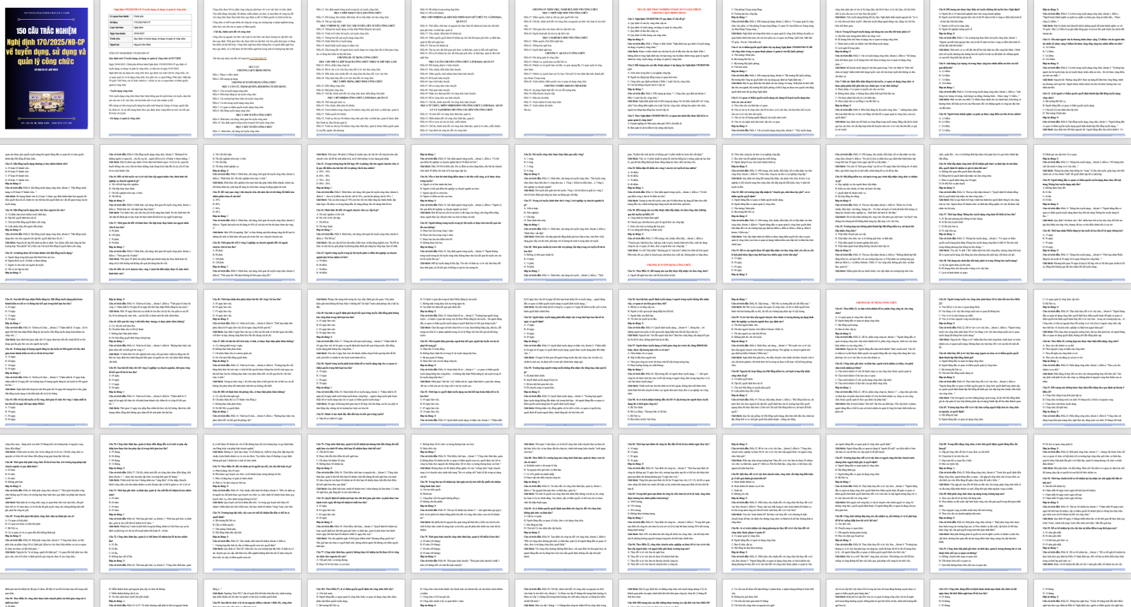 150 câu trắc nghiệm Nghị định 170/2025/NĐ-CP về tuyển dụng, sử dụng và quản lý công chức