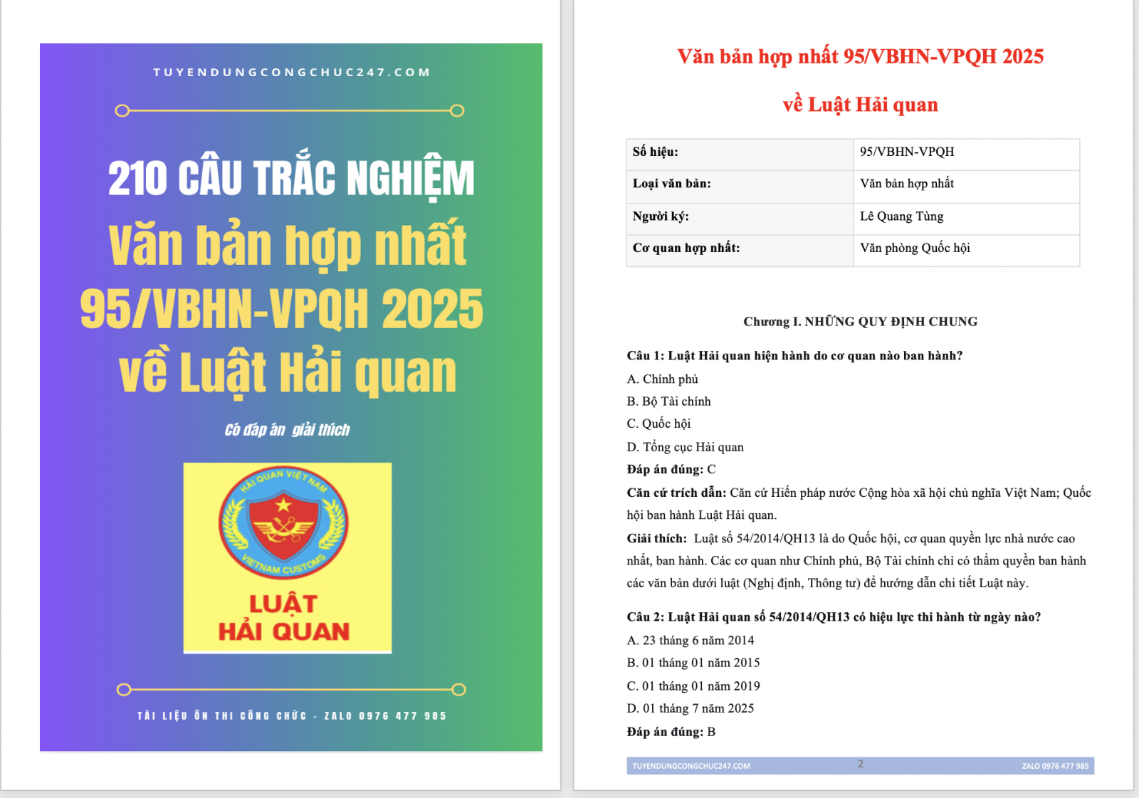 Lời kết: Vậy là 210 Câu trắc nghiệm Văn bản hợp nhất 95/VBHN-VPQH 2025 về Luật Hải quan