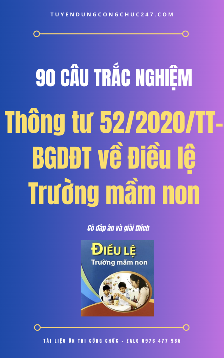 90 câu trắc nghiệm Thông tư 52/2020/TT-BGDĐT về Điều lệ Trường mầm non