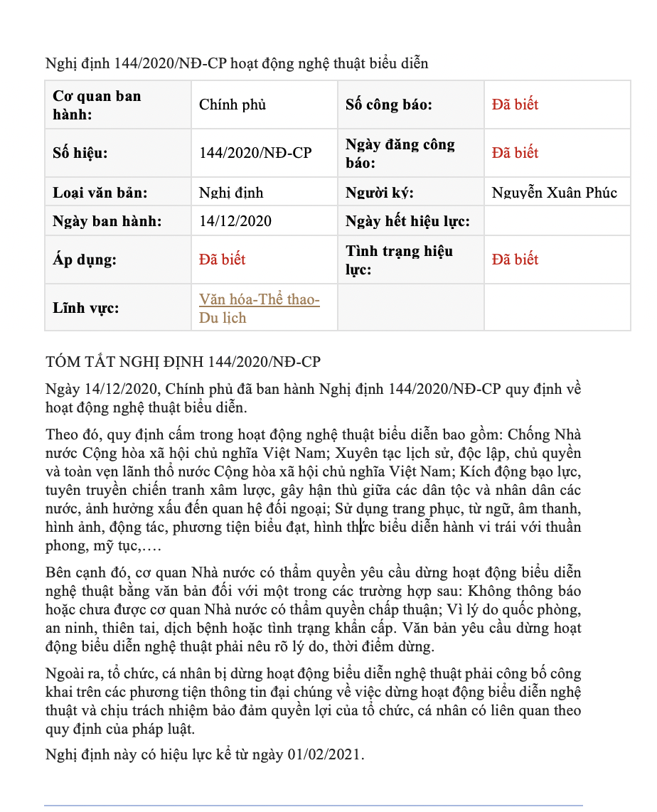 Lời kết: Vậy là 26 câu hỏi vấn đáp Nghị định 144/2020/NĐ-CP hoạt động nghệ thuật biểu diễn