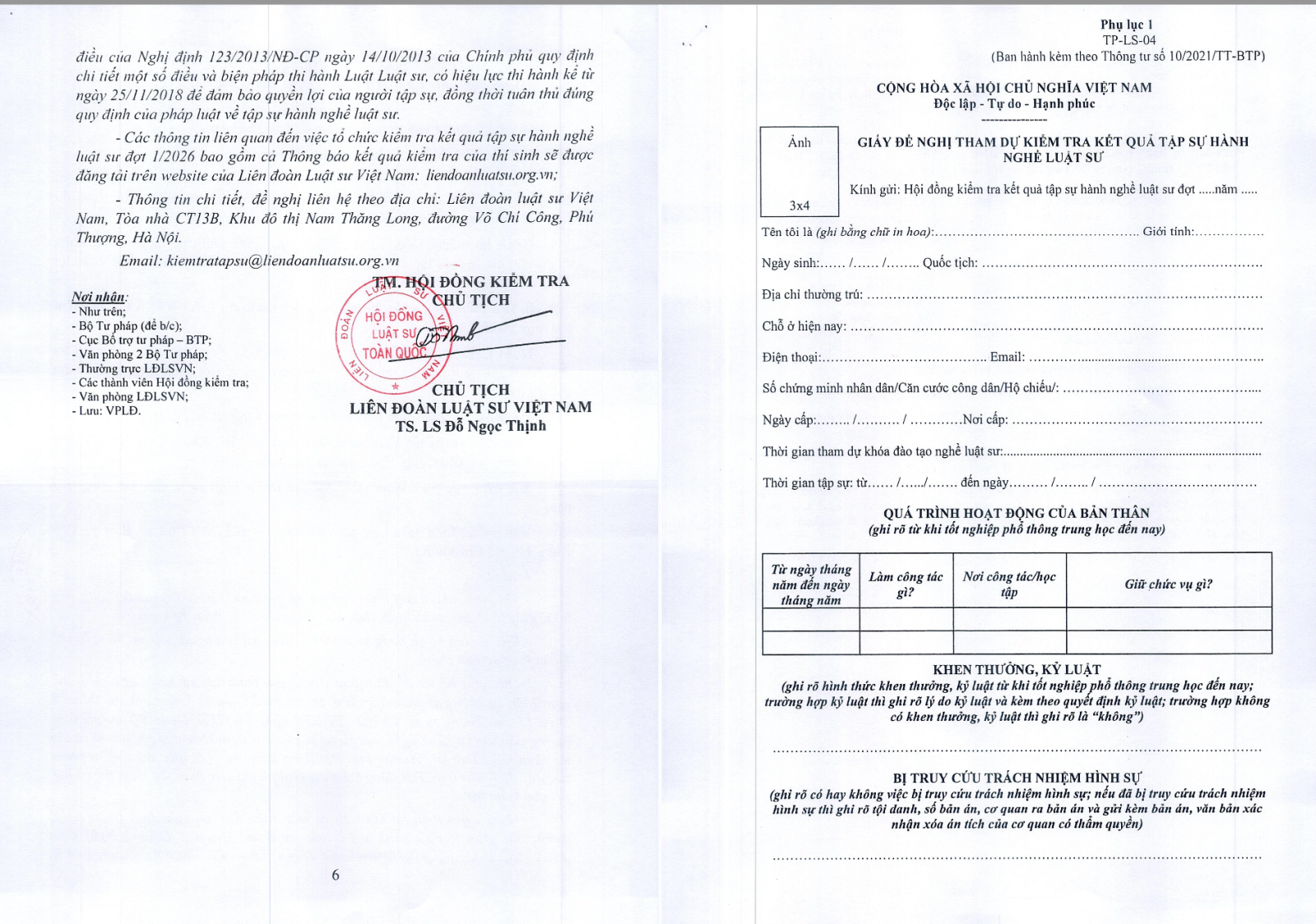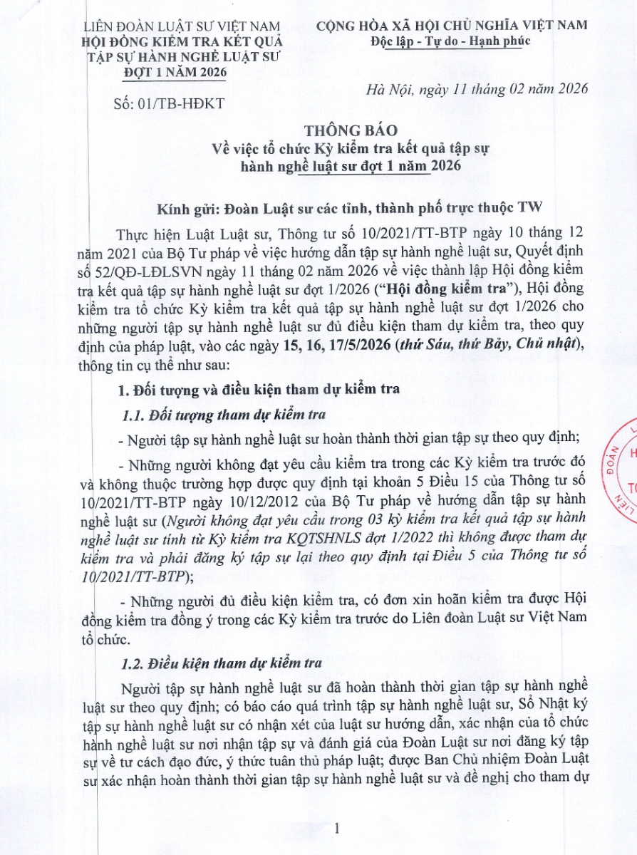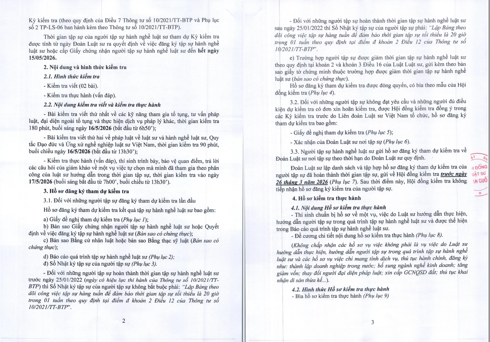 Hồ sơ đăng ký thi và Hồ sơ thực hành thi luật sư 2026
