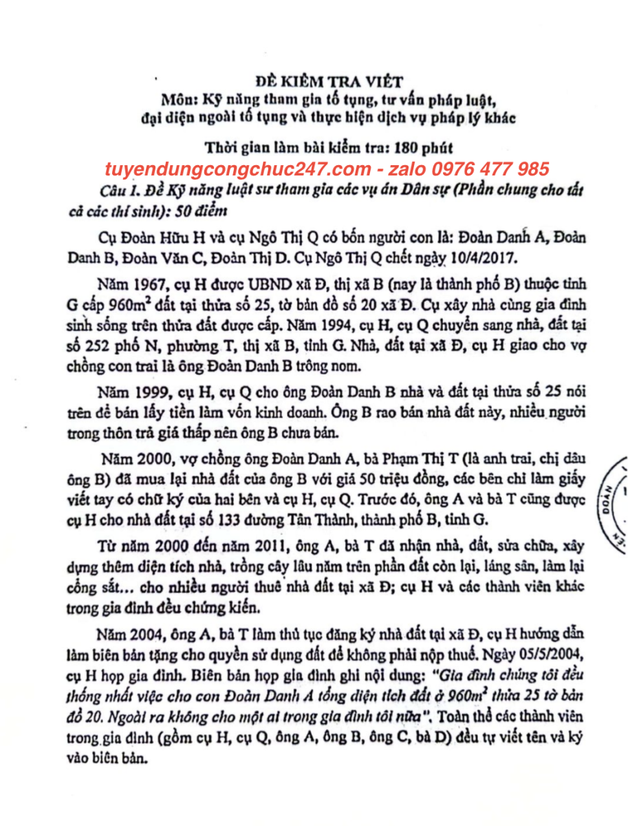 Tuyển tập đề thi kỹ năng luật sư liên đoàn luật sư có gợi ý đáp án