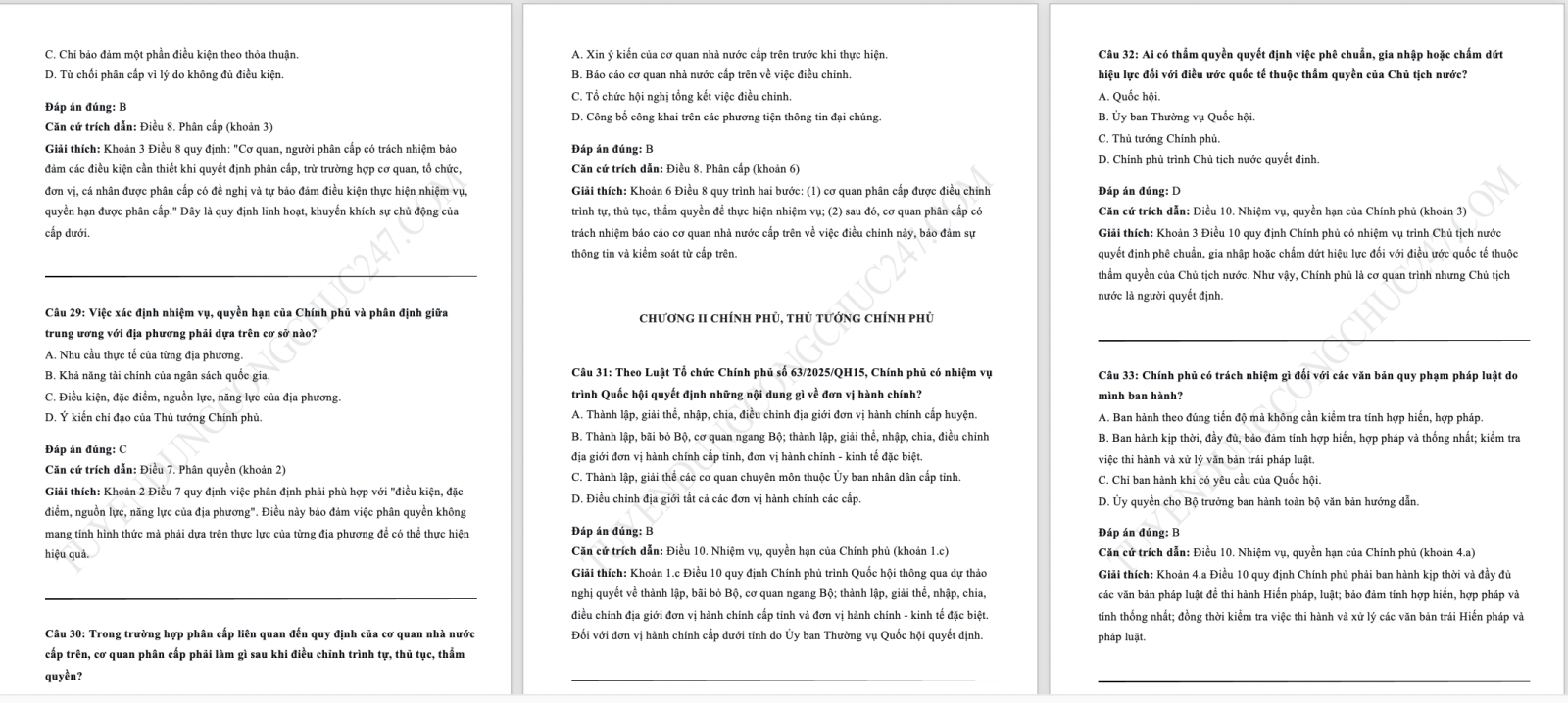 110 Câu trắc nghiệm luật tổ chức chính phủ 2025 có đáp án