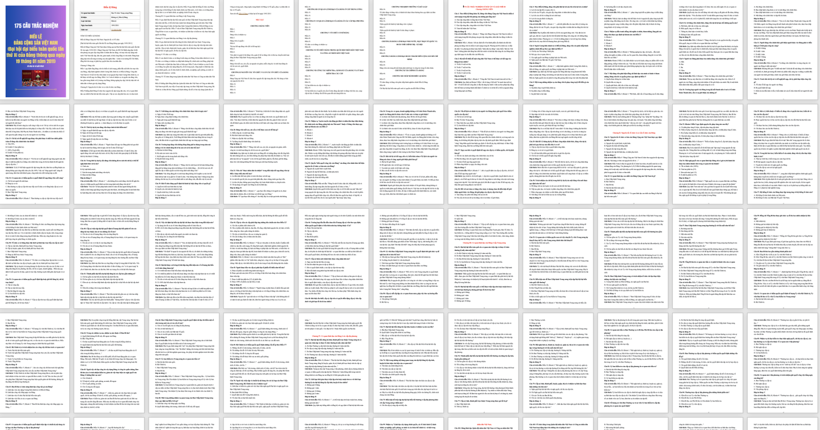 175 câu trắc nghiệm Điều lệ Đảng khóa XI