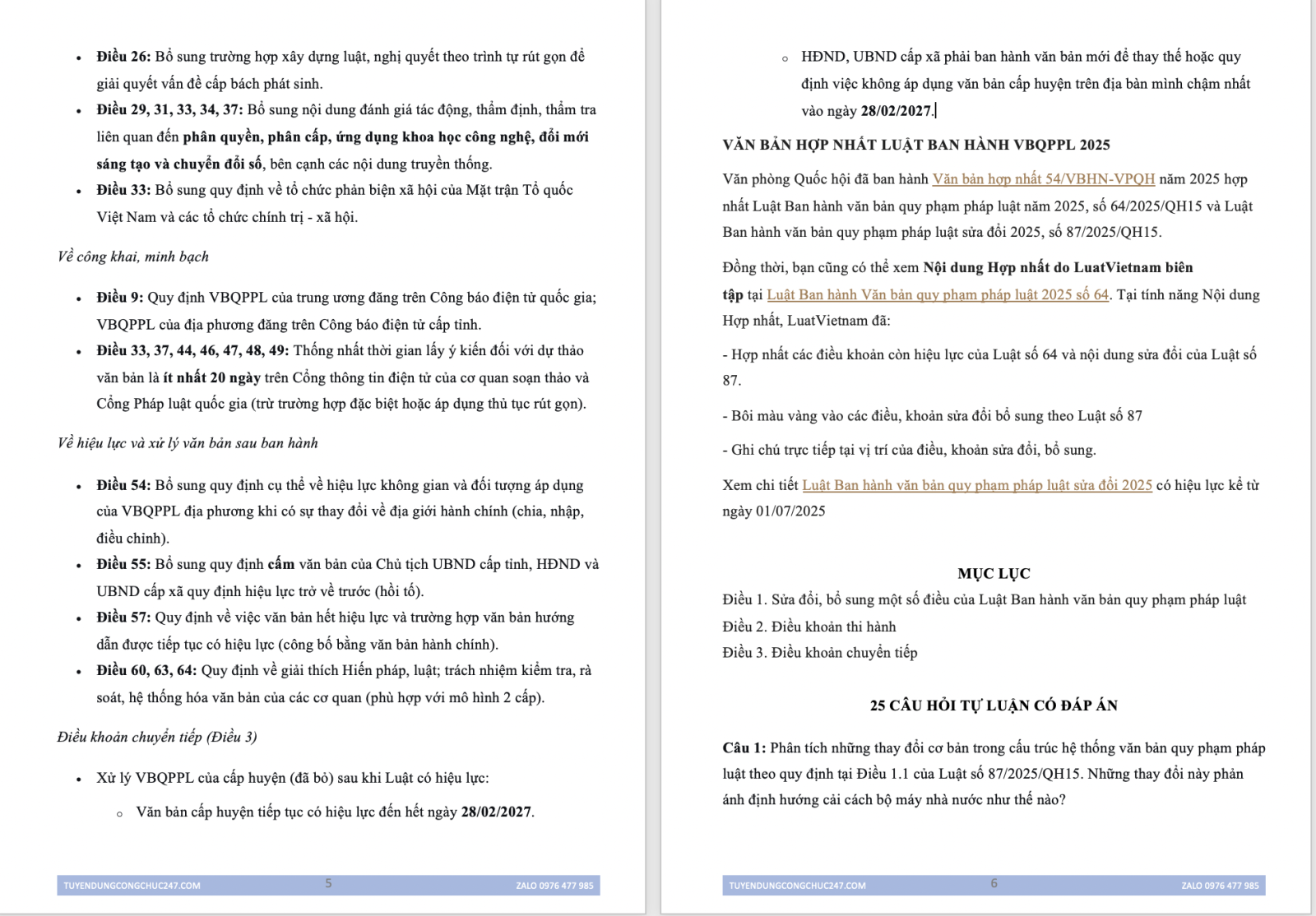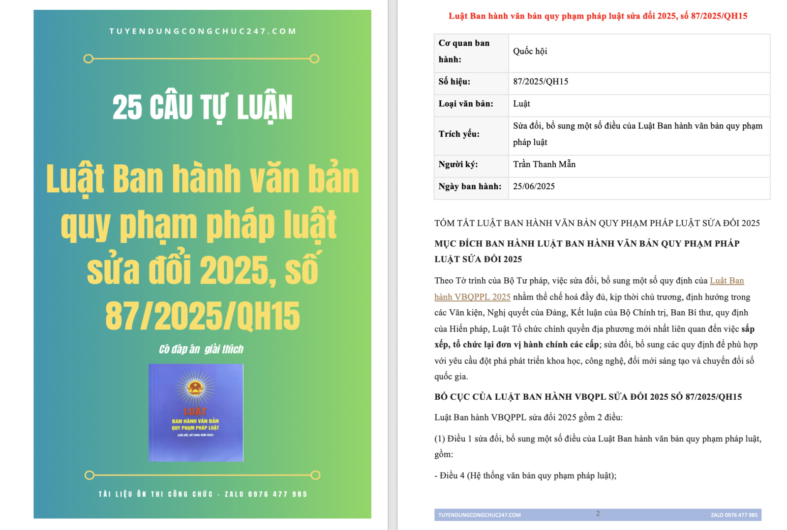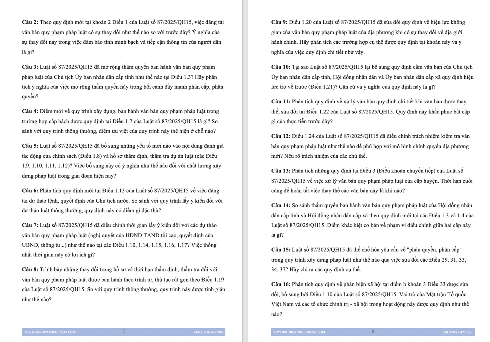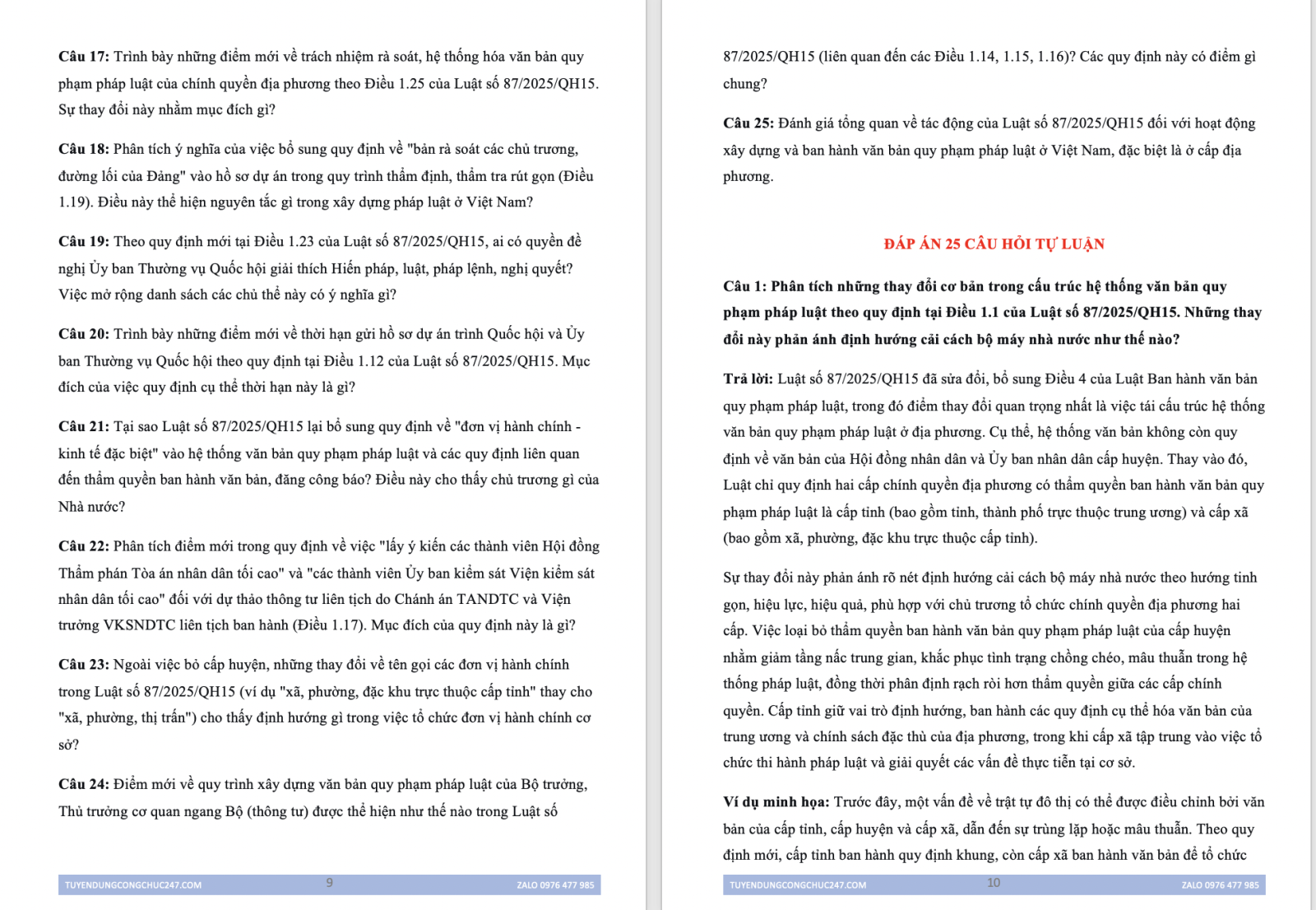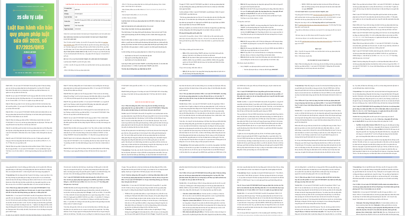 25 câu hỏi tự luận Luật Ban hành văn bản quy phạm pháp luật sửa đổi 2025, số 87/2025/QH15