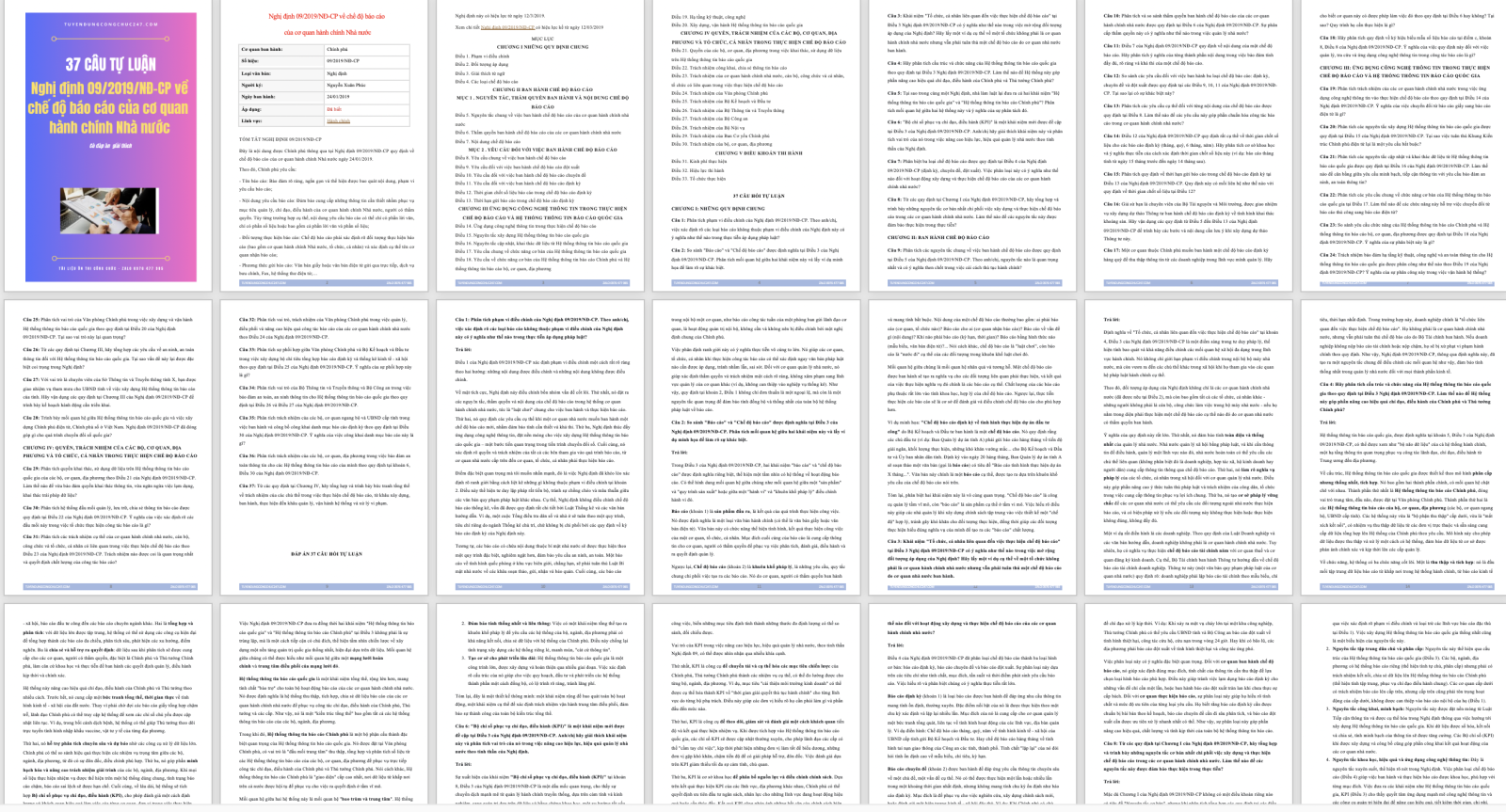 37 câu tự luận Nghị định 09/2019/NĐ-CP về chế độ báo cáo của cơ quan hành chính Nhà nước