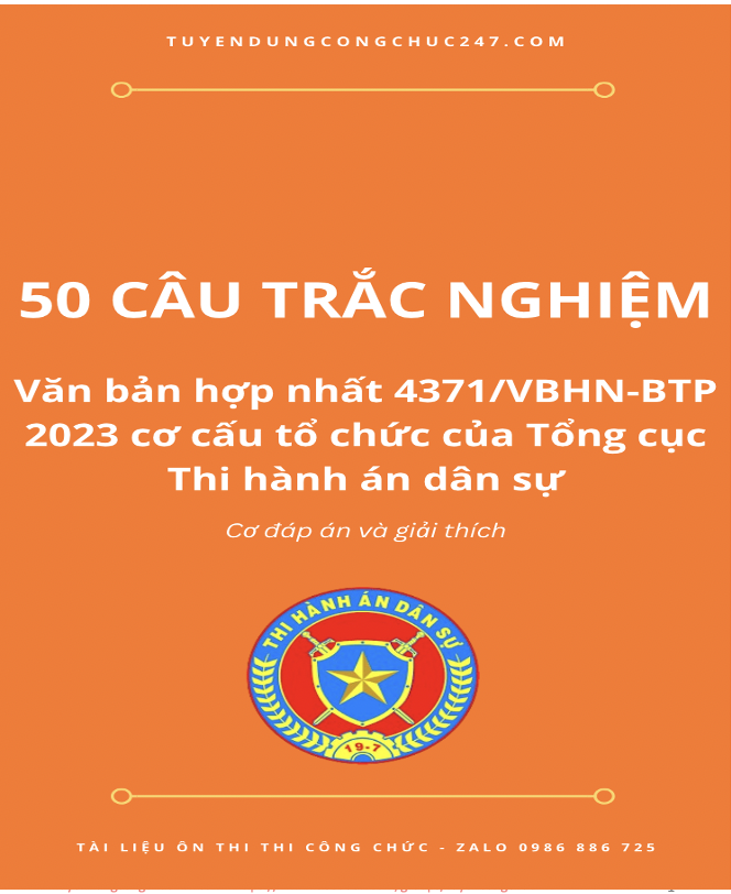 50 câu trắc nghiệm Văn bản hợp nhất 4371/VBHN-BTP 2023 cơ cấu tổ chức của Tổng cục Thi hành án dân sự