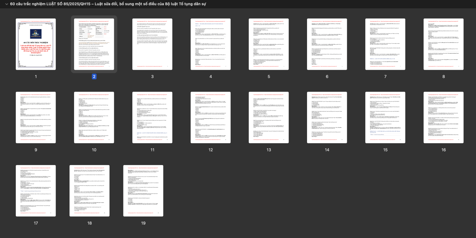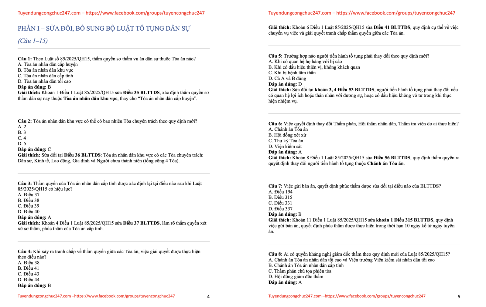 60 câu hỏi trắc nghiệm LUẬT SỐ 85/2025/QH15 – Luật sửa đổi, bổ sung một số điều của Bộ luật Tố tụng dân sự, Luật Tố tụng hành chính