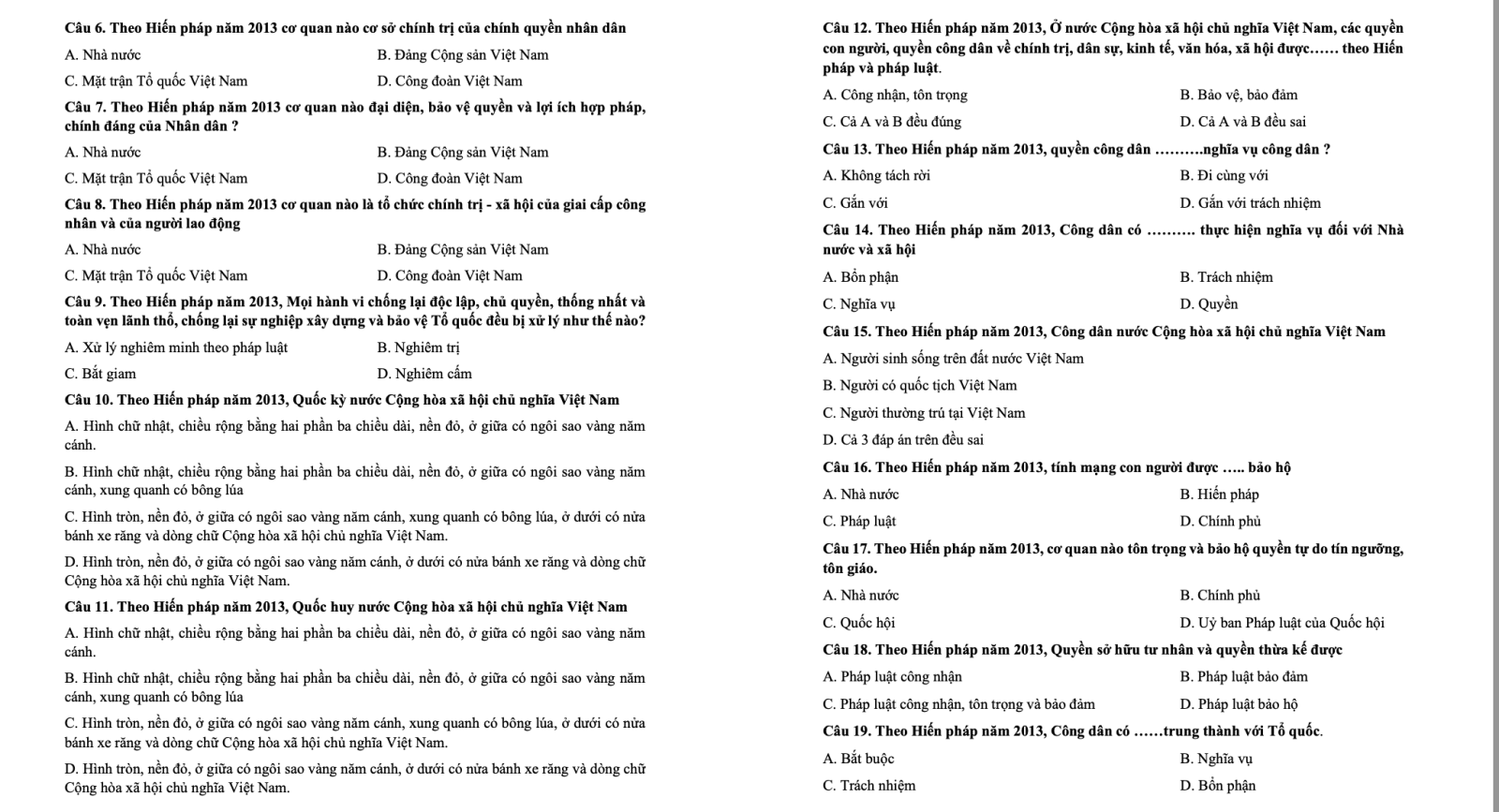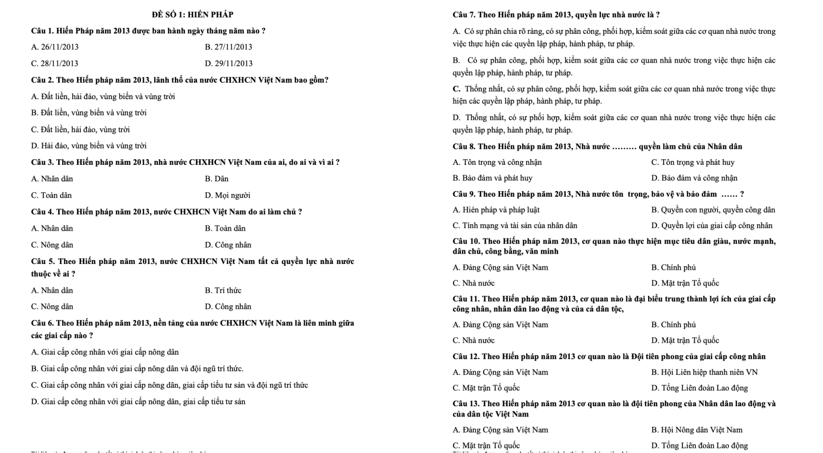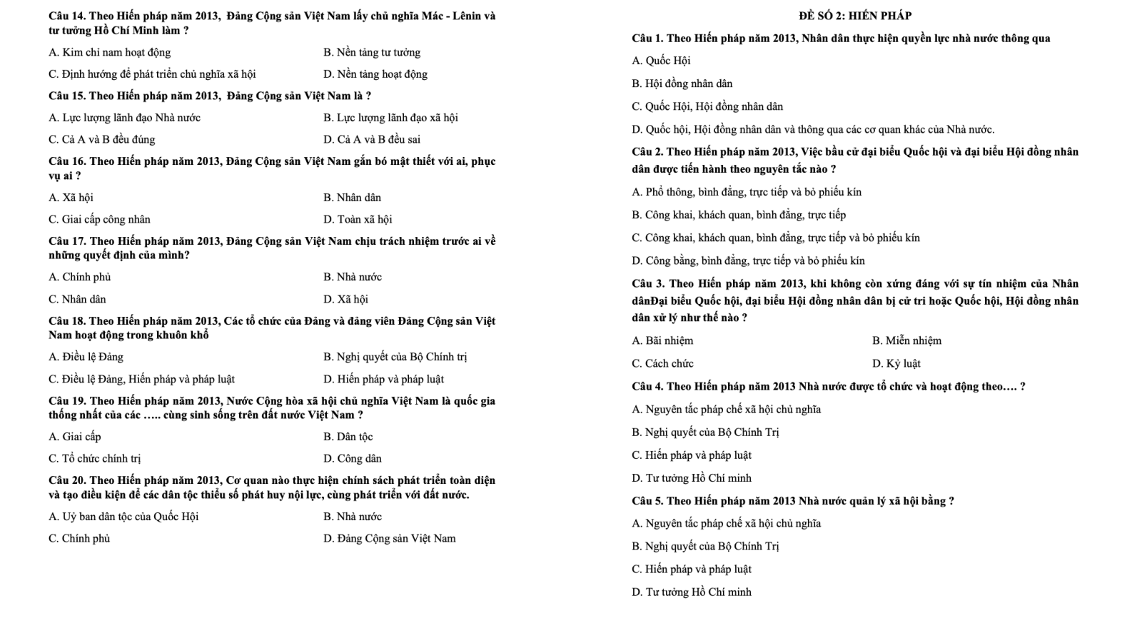 80 câu trắc nghiệm hiến pháp cộng hòa xã hội chủ nghĩa việt nam