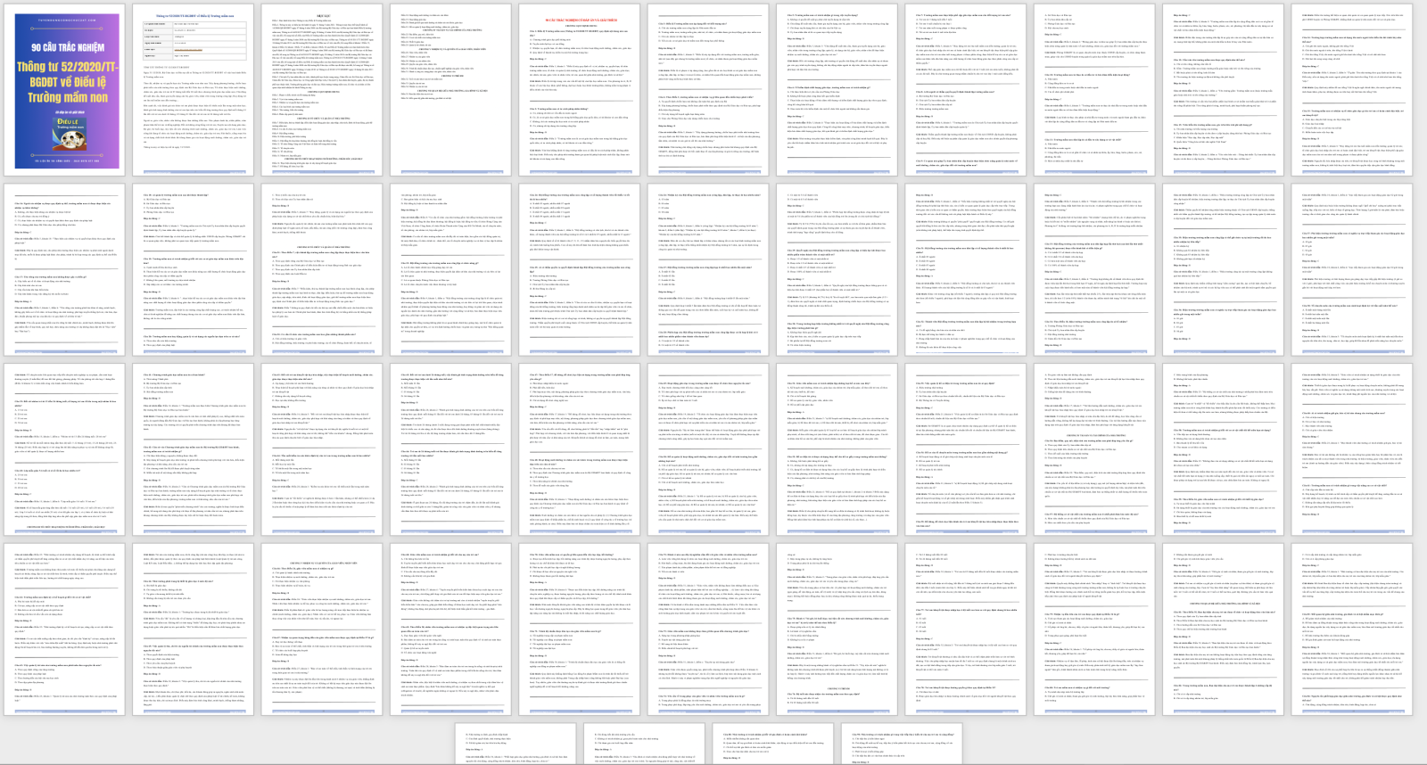 90 câu trắc nghiệm Thông tư 52/2020/TT-BGDĐT về Điều lệ Trường mầm non