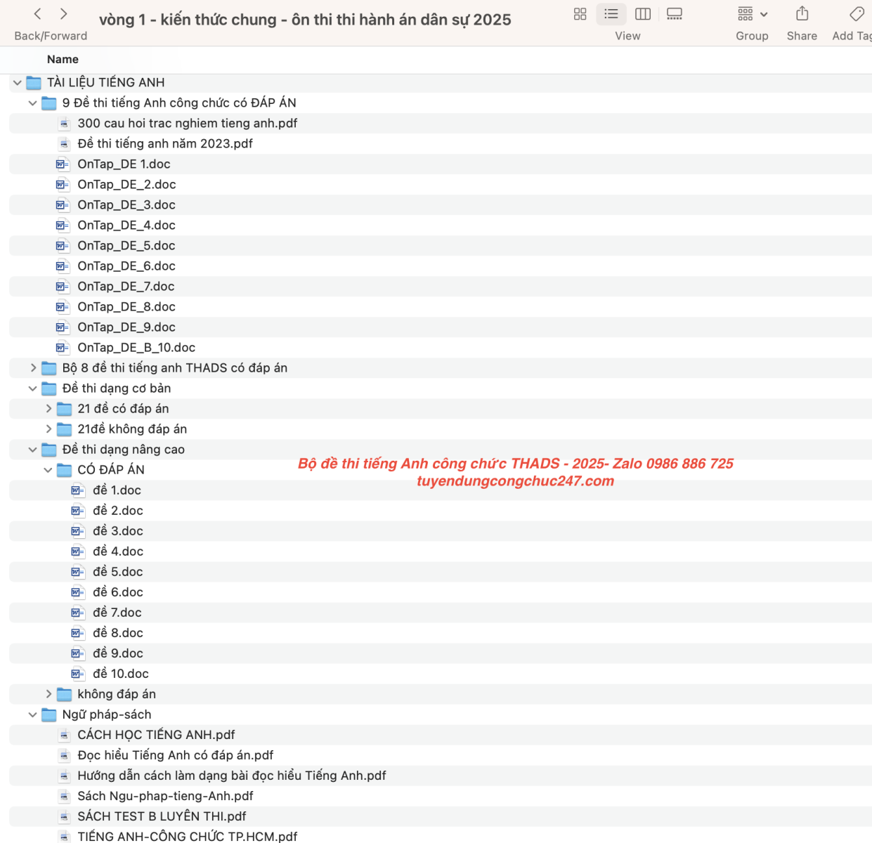 Bộ tài liệu tiếng anh ôn thi công chức thi hành án dân sự