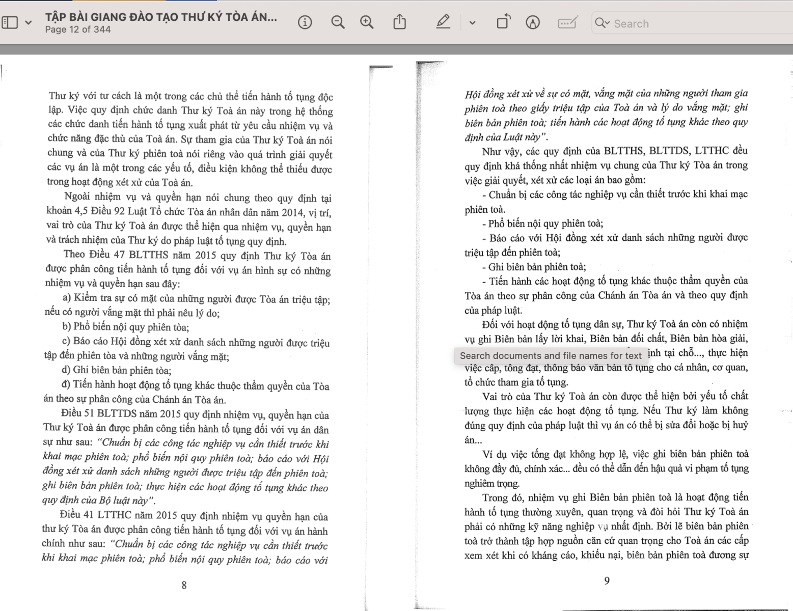 Tập bài giảng đào tạo thư ký tòa án 435 trang