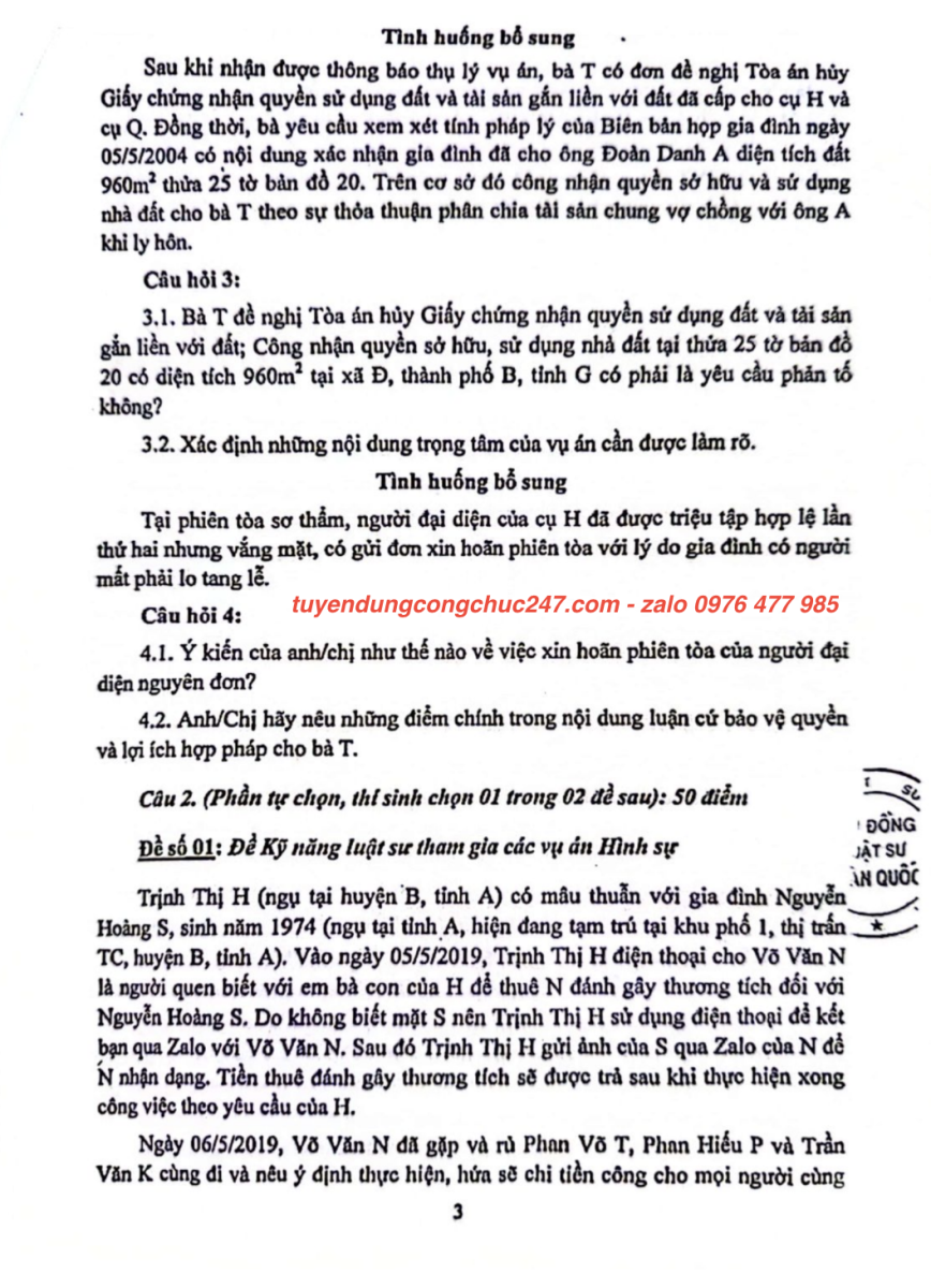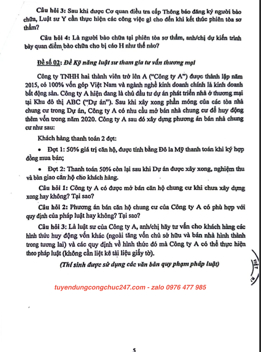Tuyển tập đề thi kỹ năng luật sư liên đoàn luật sư có gợi ý đáp án