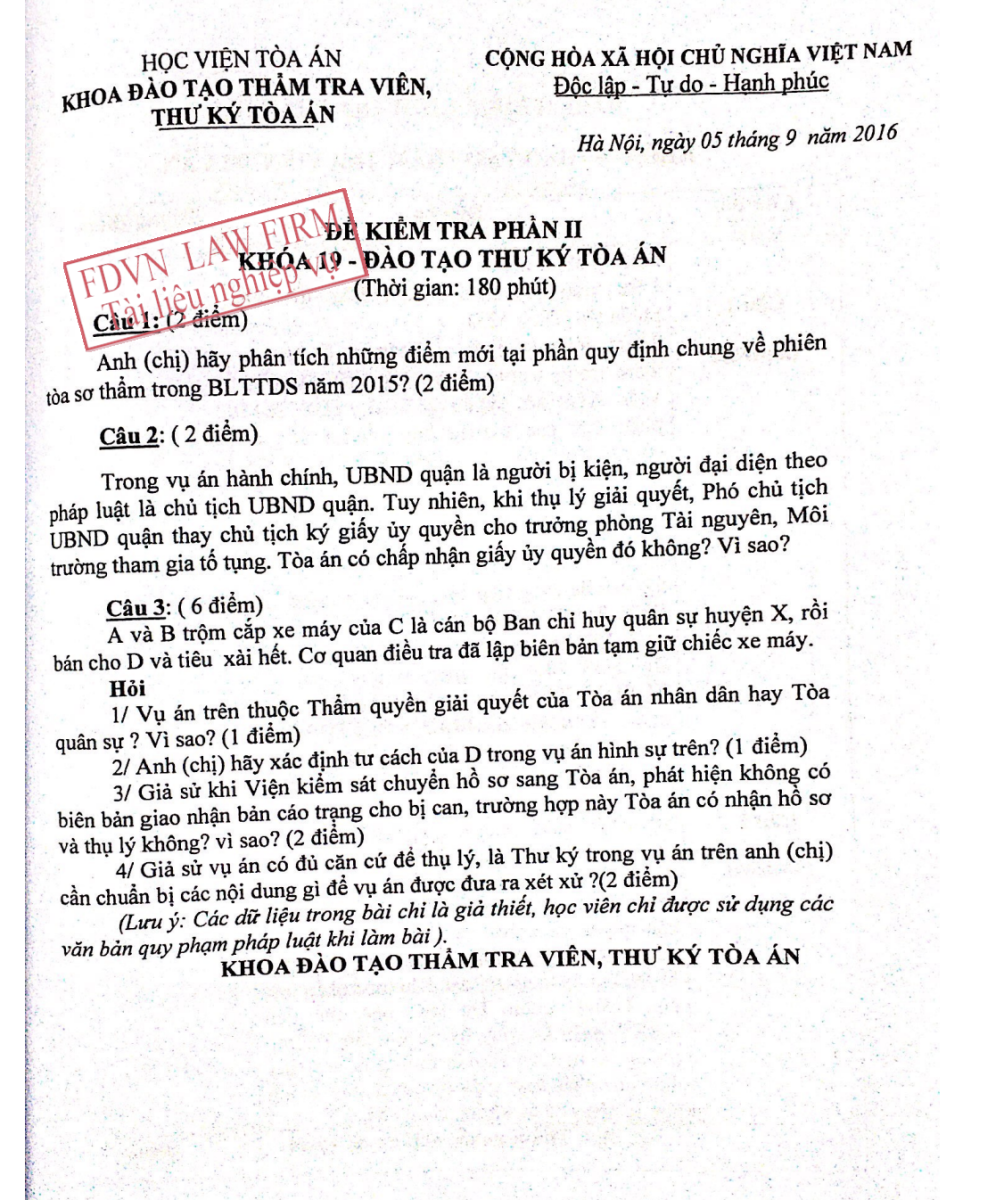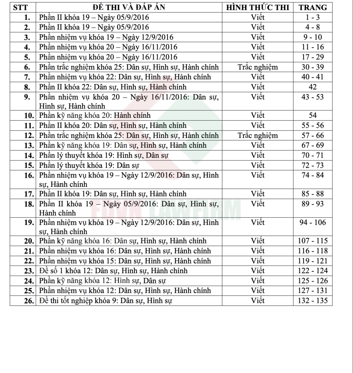 Tuyển tập đề thi và đáp án đào tạo thư ký tòa án